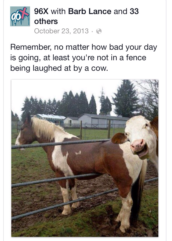 I saw this today and literally LAUGHED OUT LOUD, before thinking “Oh my, that’s ME! I’m the one in the fence, being laughed at by the “cow”! ”