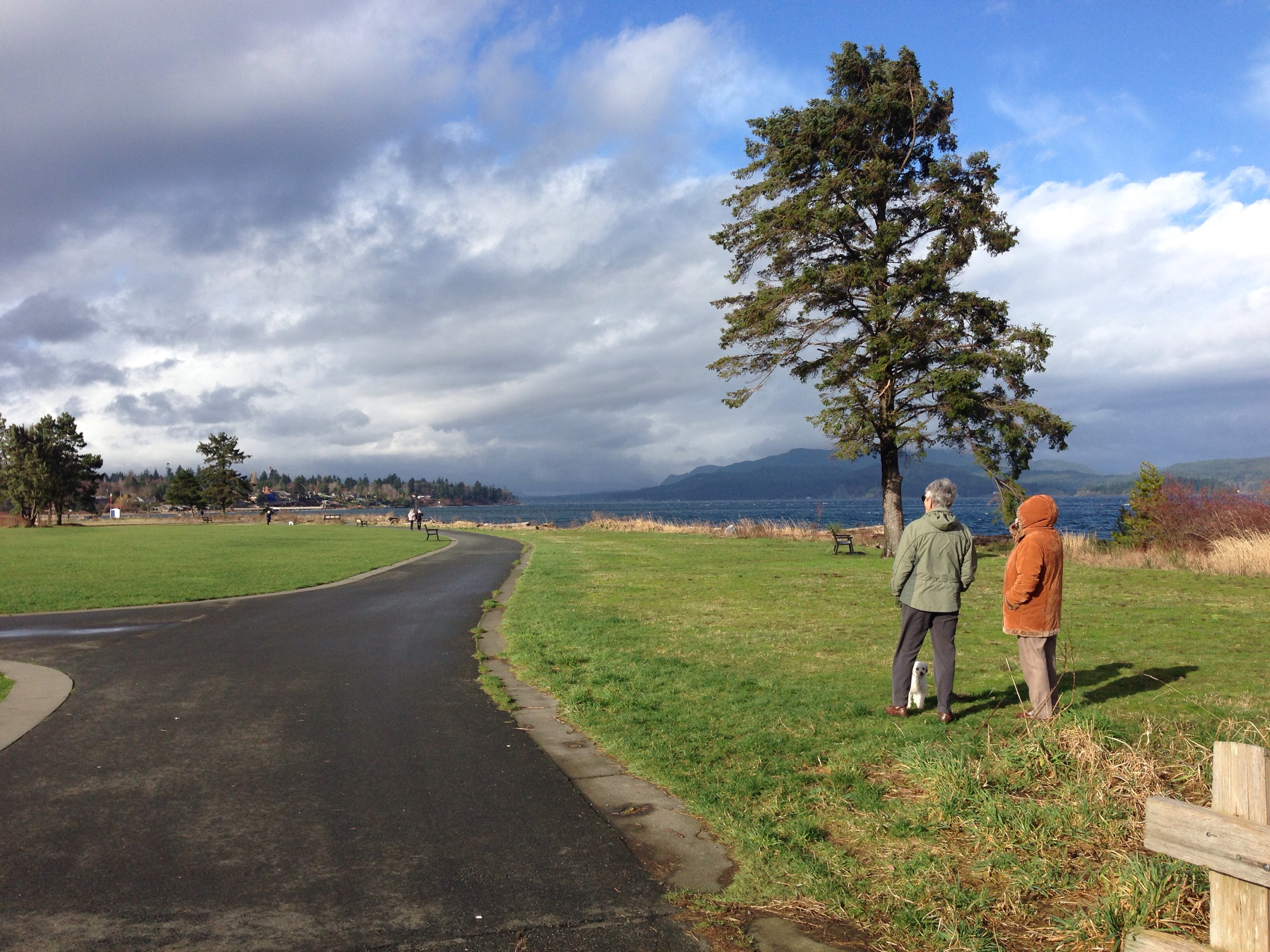 The wind tearing at my face, getting into my ears through my knitted hat. Bracing into the wind, especially strong on one side of the park. Pandora sniffing at the wind.