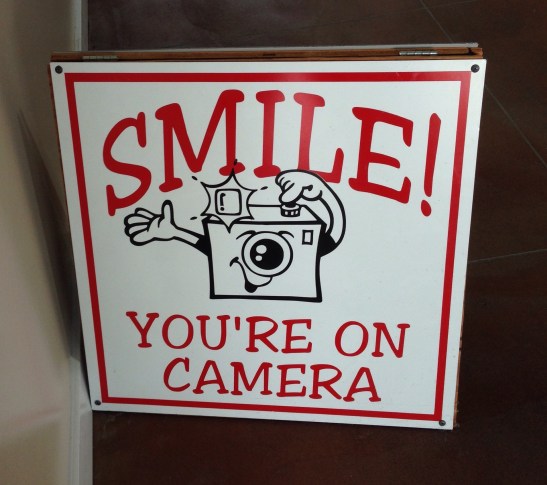 This sign is one of the things, amongst many, that make me smile as I do my walking circuit around the mall after yoga and weights. I wonder where the camera is and who is keeping an eye on it, if anyone, but, just in case, I smile anyway 🙂
