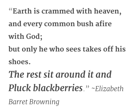 I ponder a lot on the holiness of the ordinary. She uses ones of my favourite quotes about that, from the poetry of Elizabeth Barrett Browning.