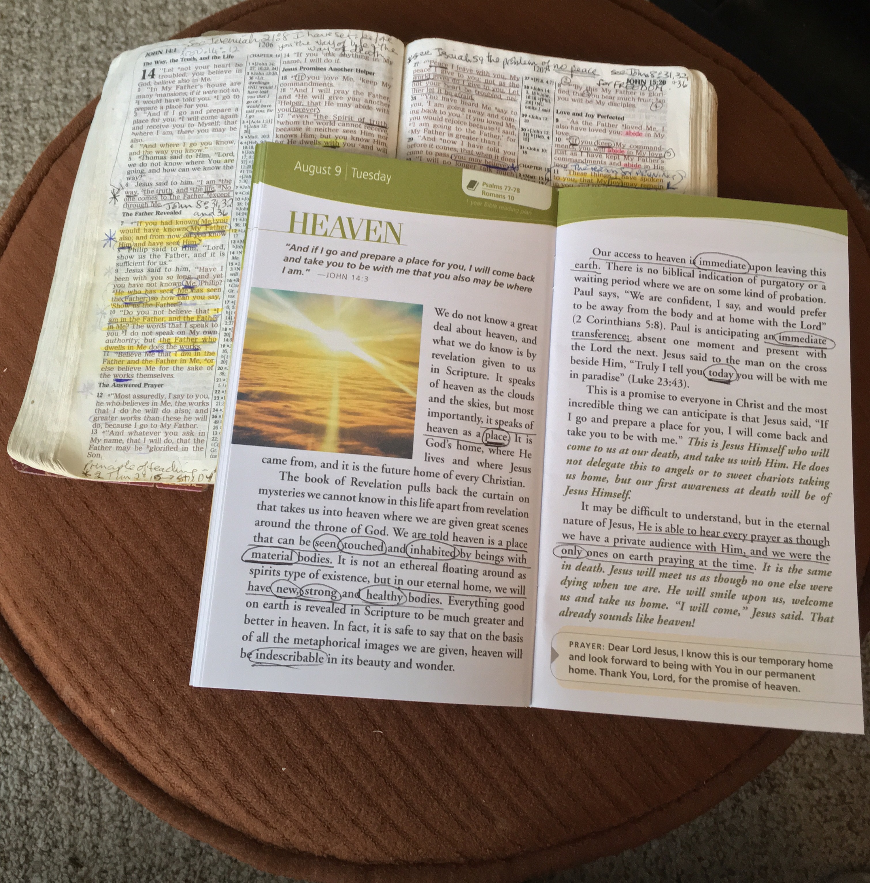 Breakfast done. Time for a devotional. Yay! It’s one about heaven! This was a very good read. The devotional is by Charles Price, of Living Truth and the monthly booklet is called “My Daily Journey with Christ”. I sure appreciate the lessons I get from it.