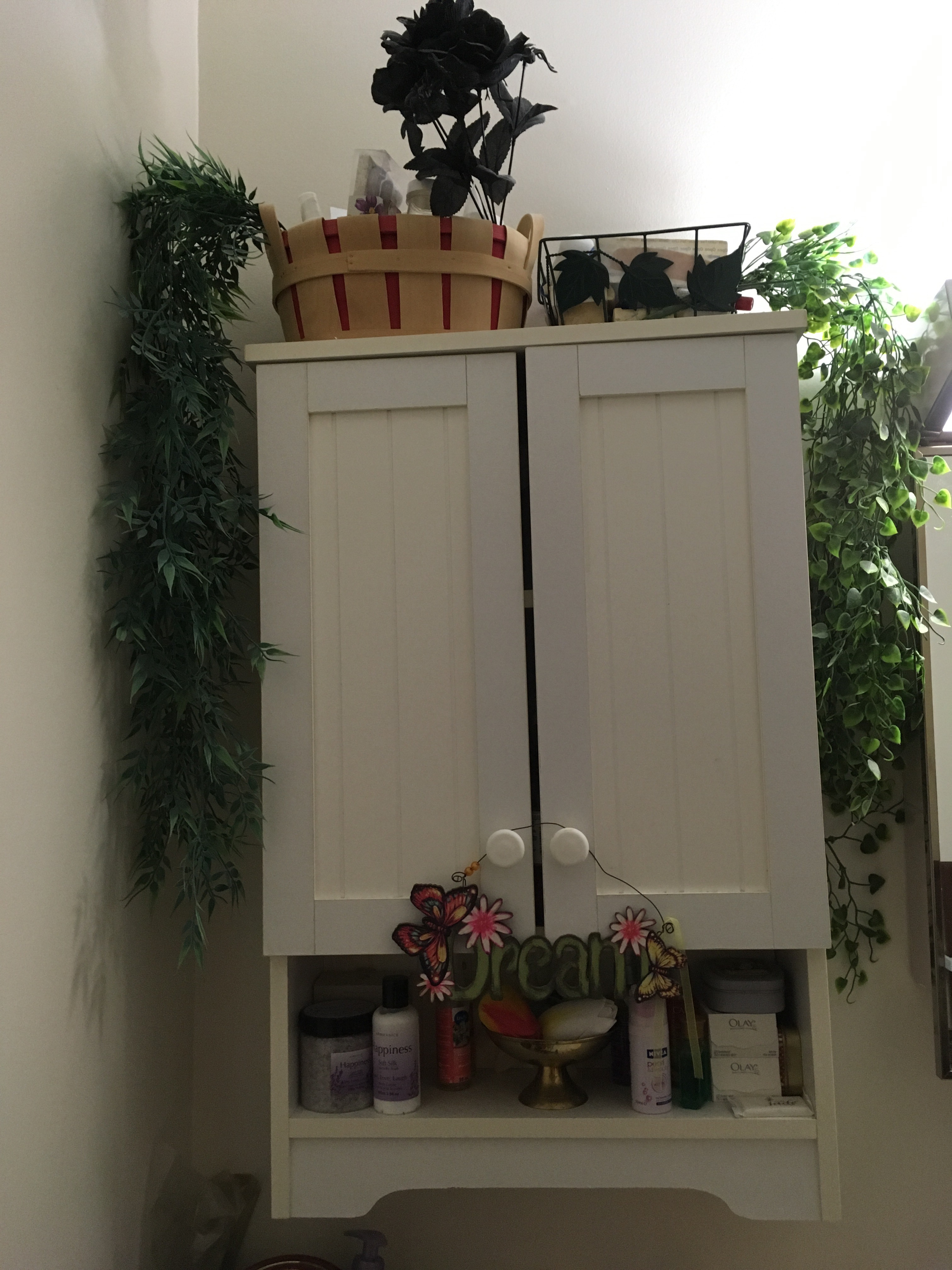 Visit the bathroom. I like my bathroom cabinet. I had fun decorating it and I like to see it every day.