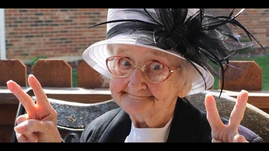 I think it is great. You should use in place of the dog. This granny looks like she is off to the Kentucky Derby for a mint julep and a good time.