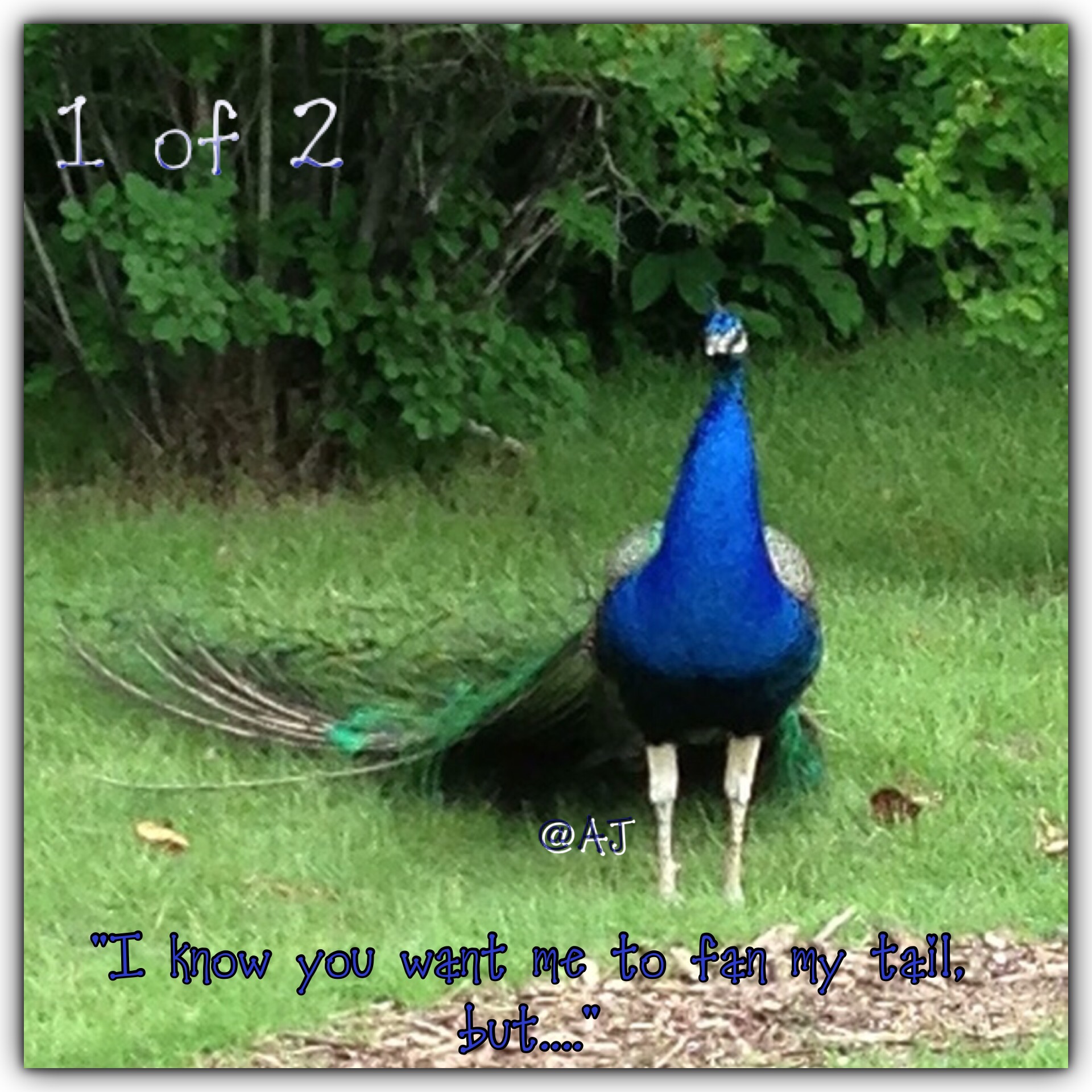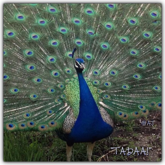 Next up, the peacock. This bird amused me. I waited patiently for a pic of the tail. Here’s what happened….