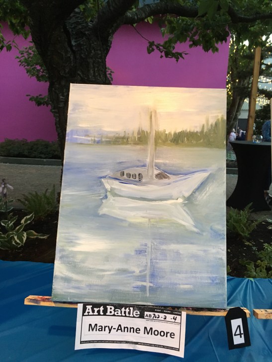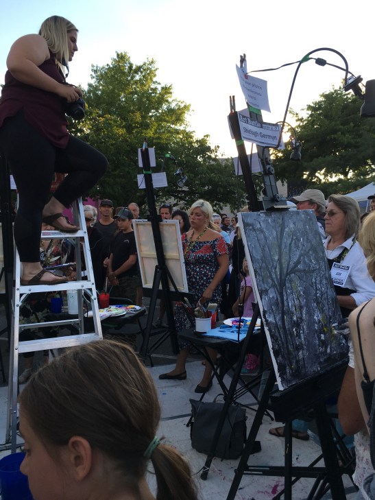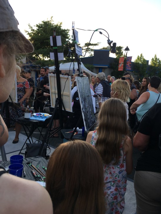 There were half a dozen or so easels in a circle in the middle of the area, where a group of artists were to work on their canvasses. They would have exactly 20 mins to create a piece of work.