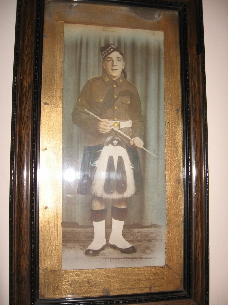He was enlisted in the Gordon Highlanders and posted to the 1st battalion. He proceeded to 2nd battalion in 1942 at age 18 and on into the tank brigade in 1943 at 19 years old.