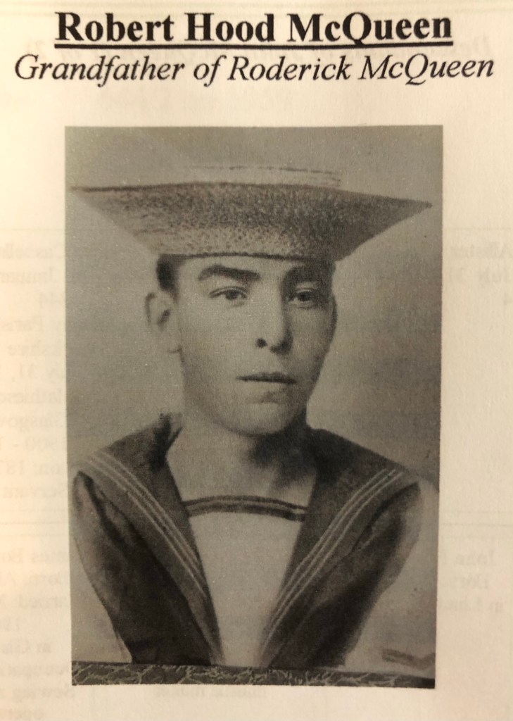 My paternal granddad, Robert Hood McQueen, joined the Royal Navy at the age of 15, in 1898. He was in the Navy throughout World War 1, serving a total of 20 years as Able Seaman and Leading Seaman. He died in 1927.