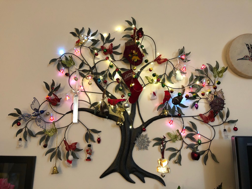 Each year, so far, it has been increasingly “festooned” with Christmas ornaments. Now, for the first time, it even has lights!!!
