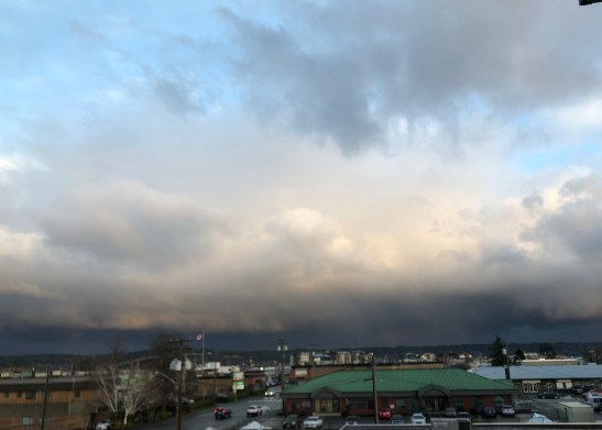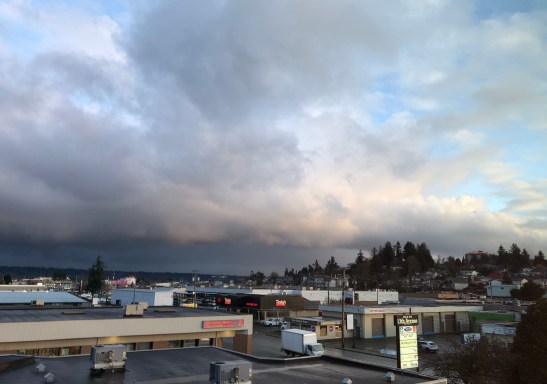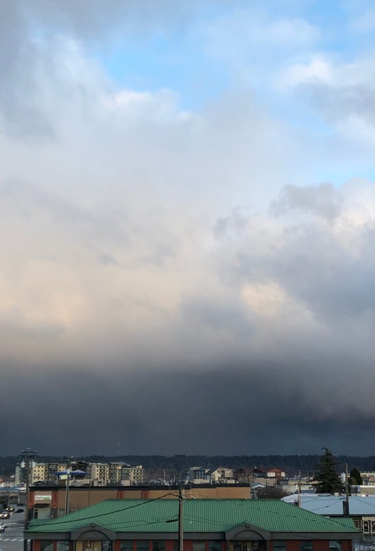 After a beautiful, bright, but now rather chilly day, I noticed the heavy skies through our apartment windows…..