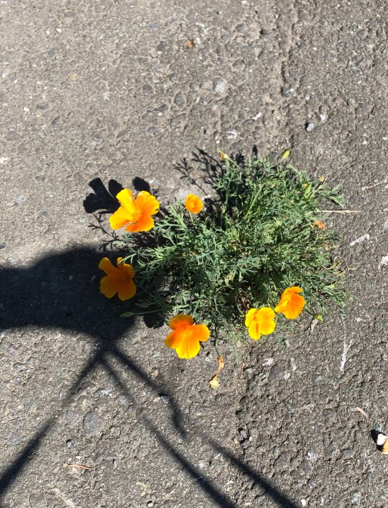 On the cement sidewalk, growing in a crack…..
