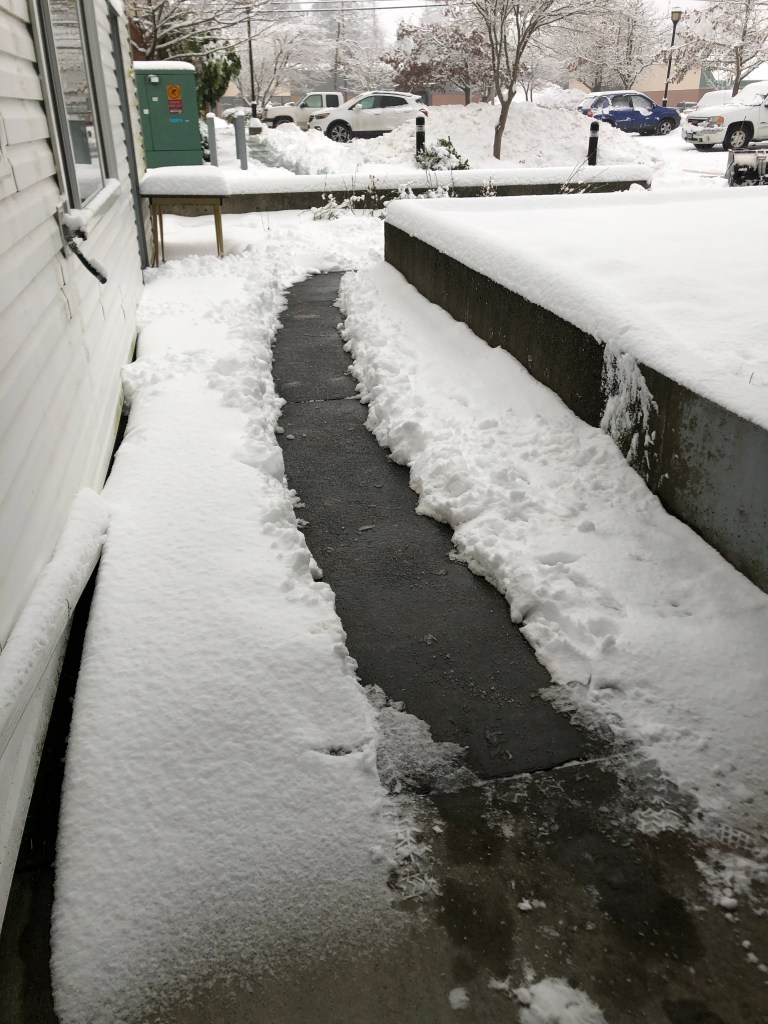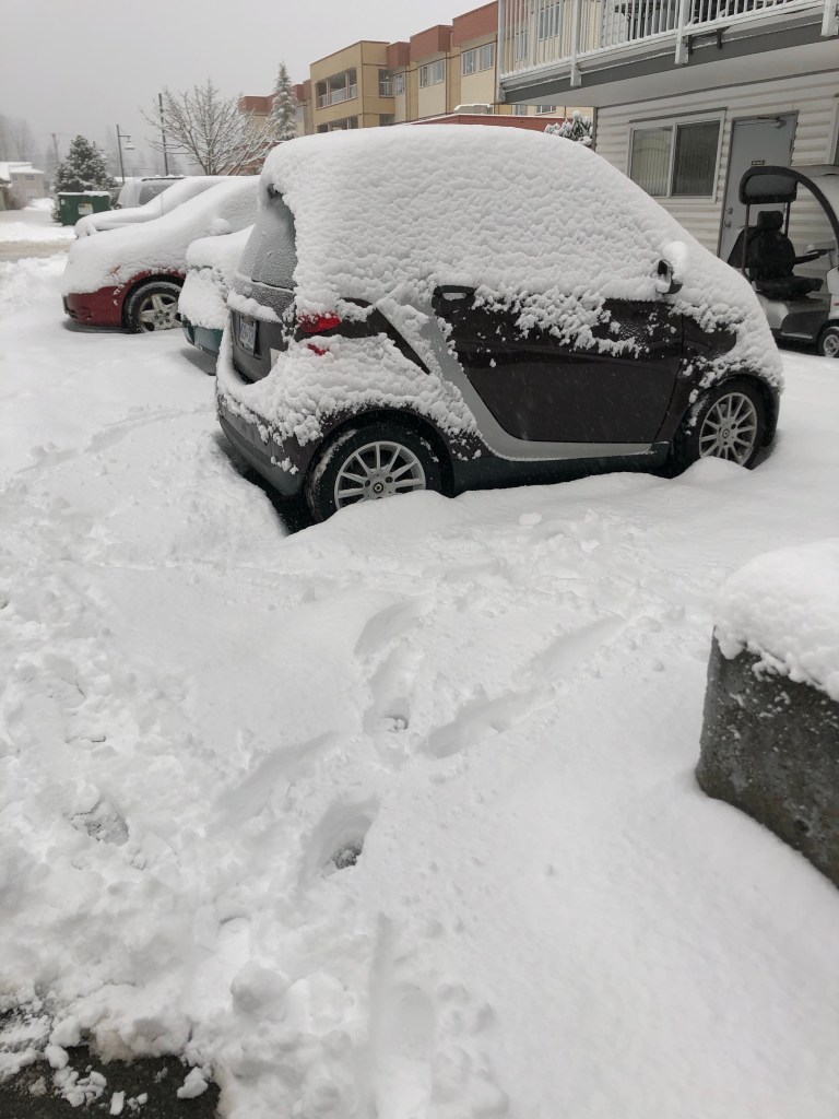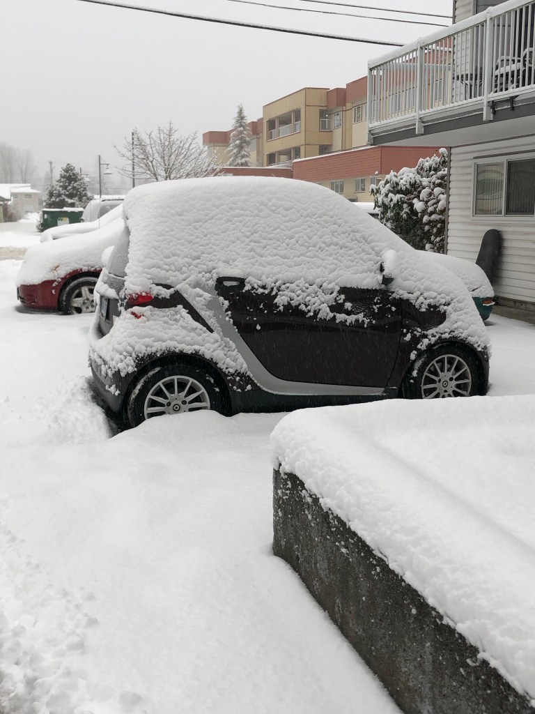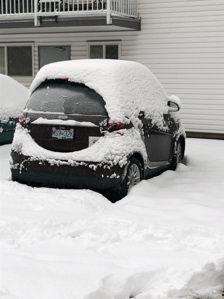 I saw the snow when I got up this morning and knew I would have to cancel my kettle shift, even though it’s not that far from where I live. I don’t want to take the little smart car on the roads, and even walking would not really be safe in these conditions. Sad……l