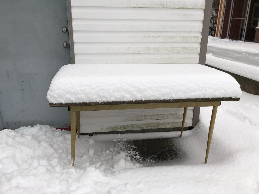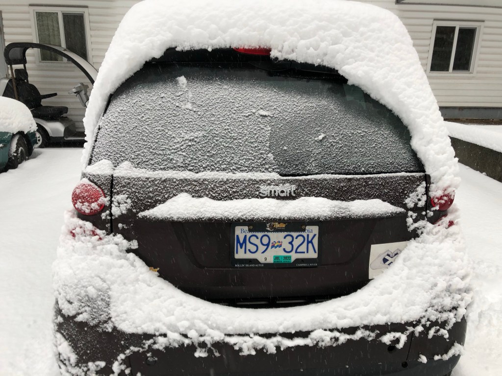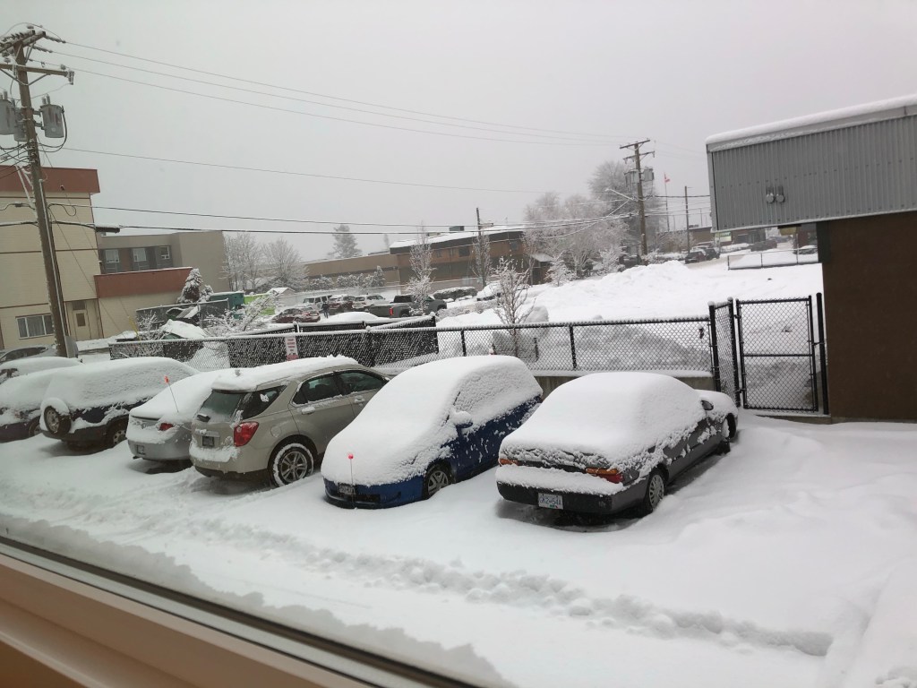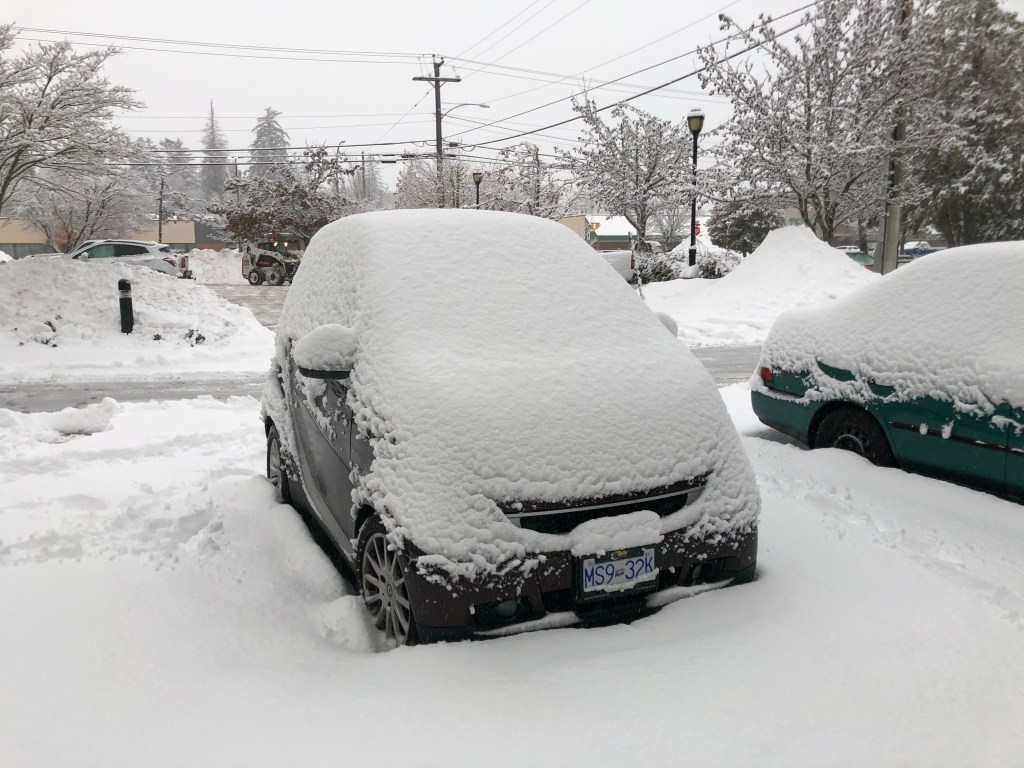 I saw the snow when I got up this morning and knew I would have to cancel my kettle shift, even though it’s not that far from where I live. I don’t want to take the little smart car on the roads, and even walking would not really be safe in these conditions. Sad……l