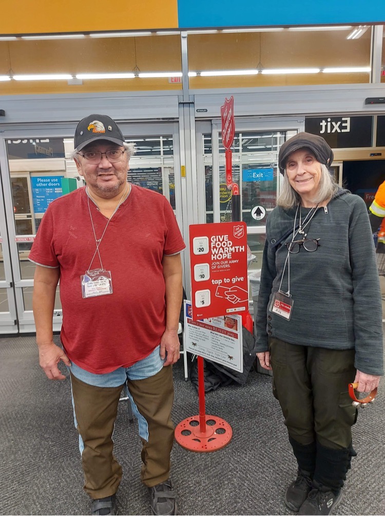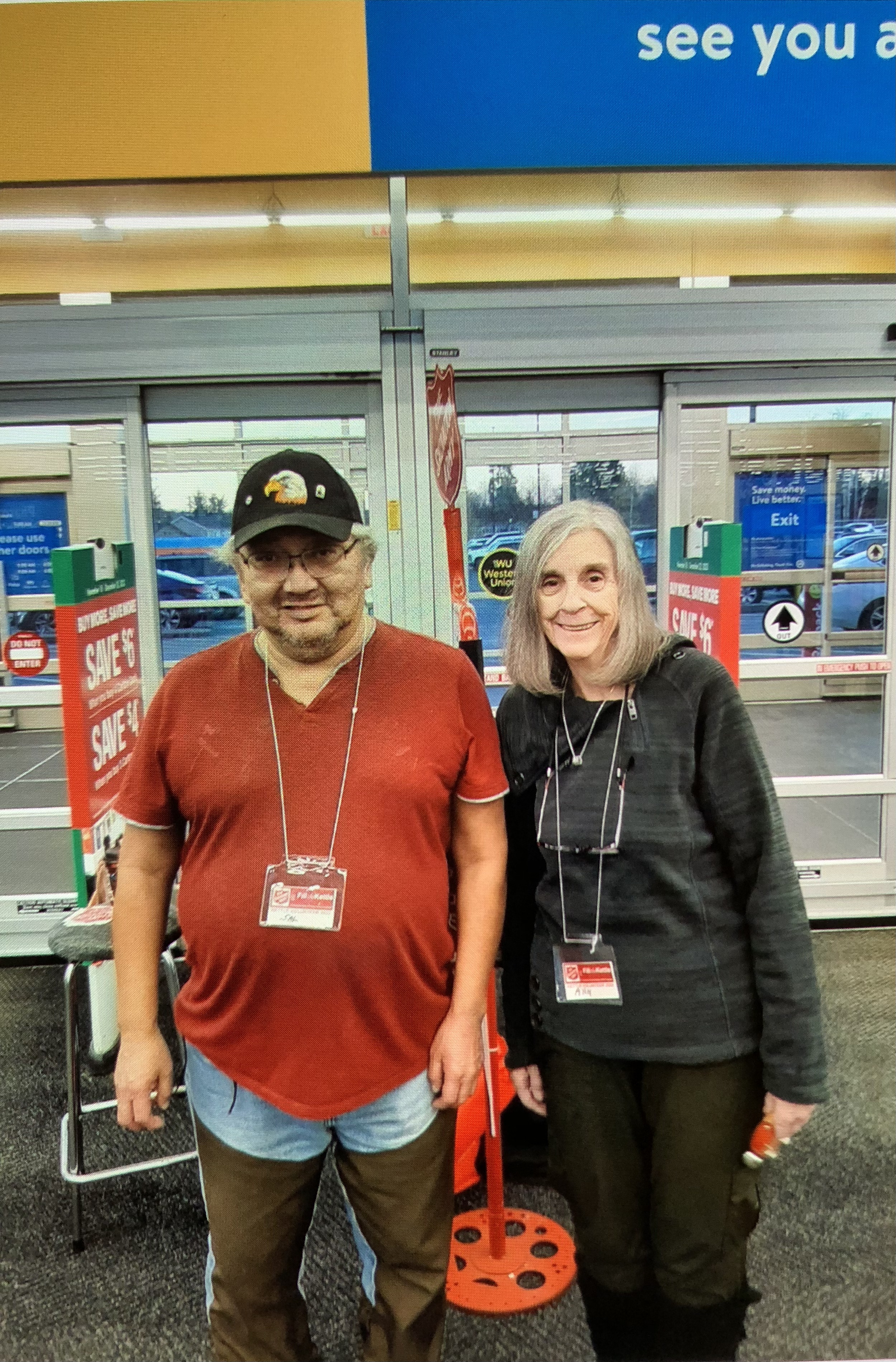 I like doing the Salvation Army Christmas Kettle shifts. It makes me happy to be doing something that involves people and helps other people. It’s a bit of a ministry. Smiling a friendly smile, saying Merry Christmas, or God bless, or even just a hello or a goodnight as they walk by. Sometimes we sing Christmas carols. I love the energy it gives me just to be doing a kettle shift.