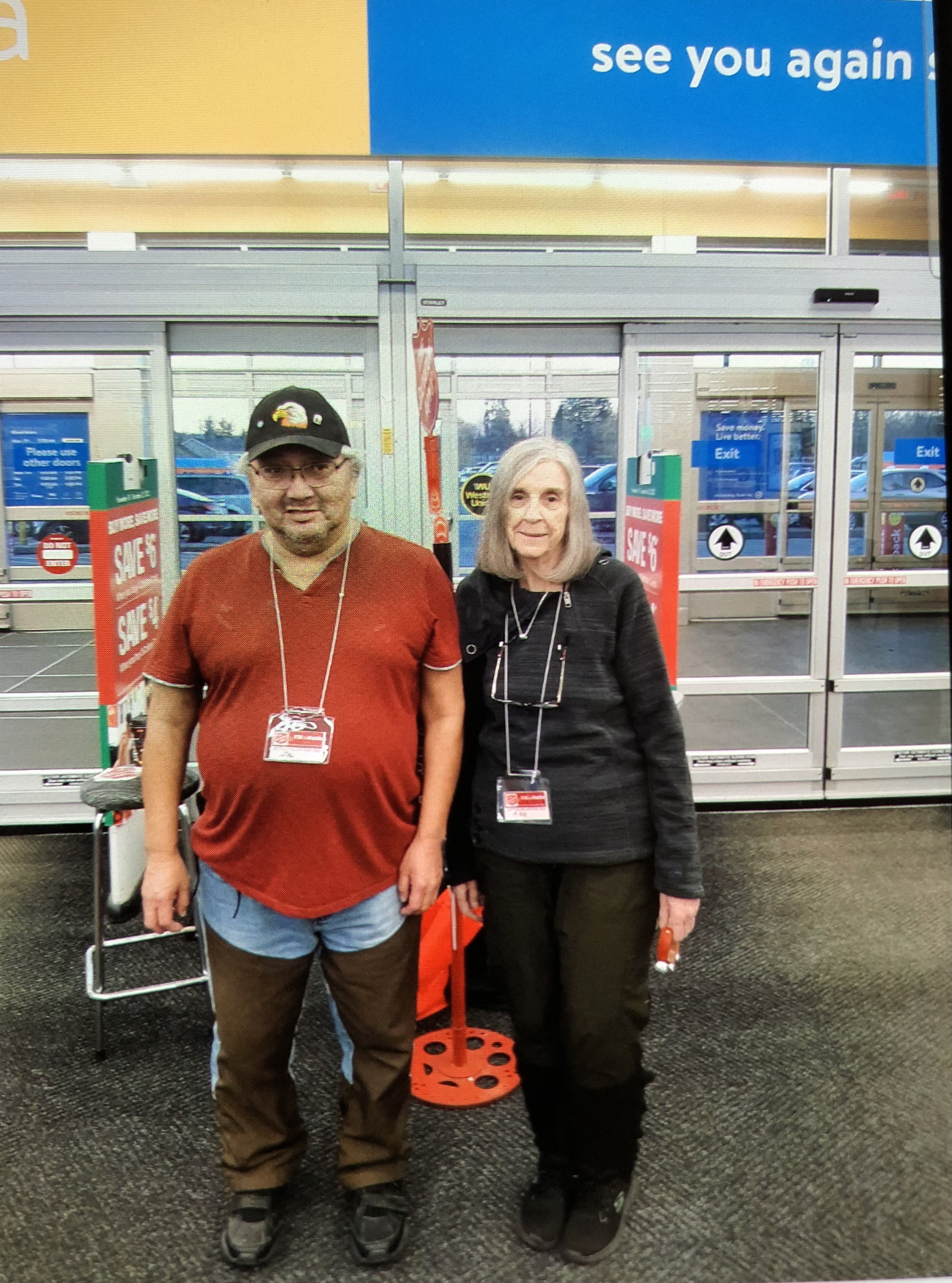 Tonight, I was on a kettle shift at Walmart with my nephew. I took the first 45 mins and then went for a break. I needed to sit a while and sip a coffee. My nephew took my place standing, ringing the bell, and greeting passers. After my coffee break, I remembered I needed some vitamins, so I went shopping. Found what I needed and returned, placing my vitamins into my bag with my coat behind the kettle.