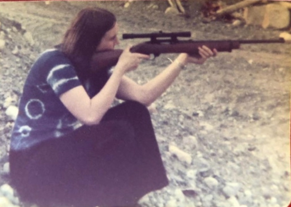 I was born in a little place called Oakley, near Dunfermline, in Scotland which earned me the nickname of “Annie Oakley” or “Annie Get Your Gun”. (I got the guns later, in my 20’s, and learned how to shoot a rifle 😉 ). Pic below!