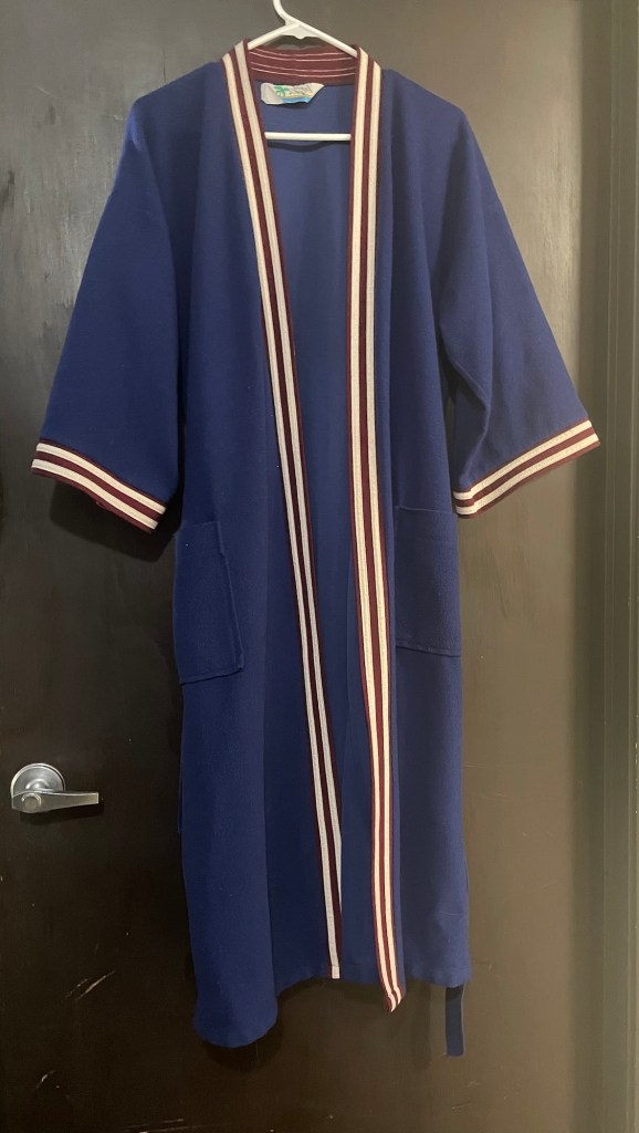 The oldest thing I am wearing right now is my late husband’s bath robe/dressing gown!!!!